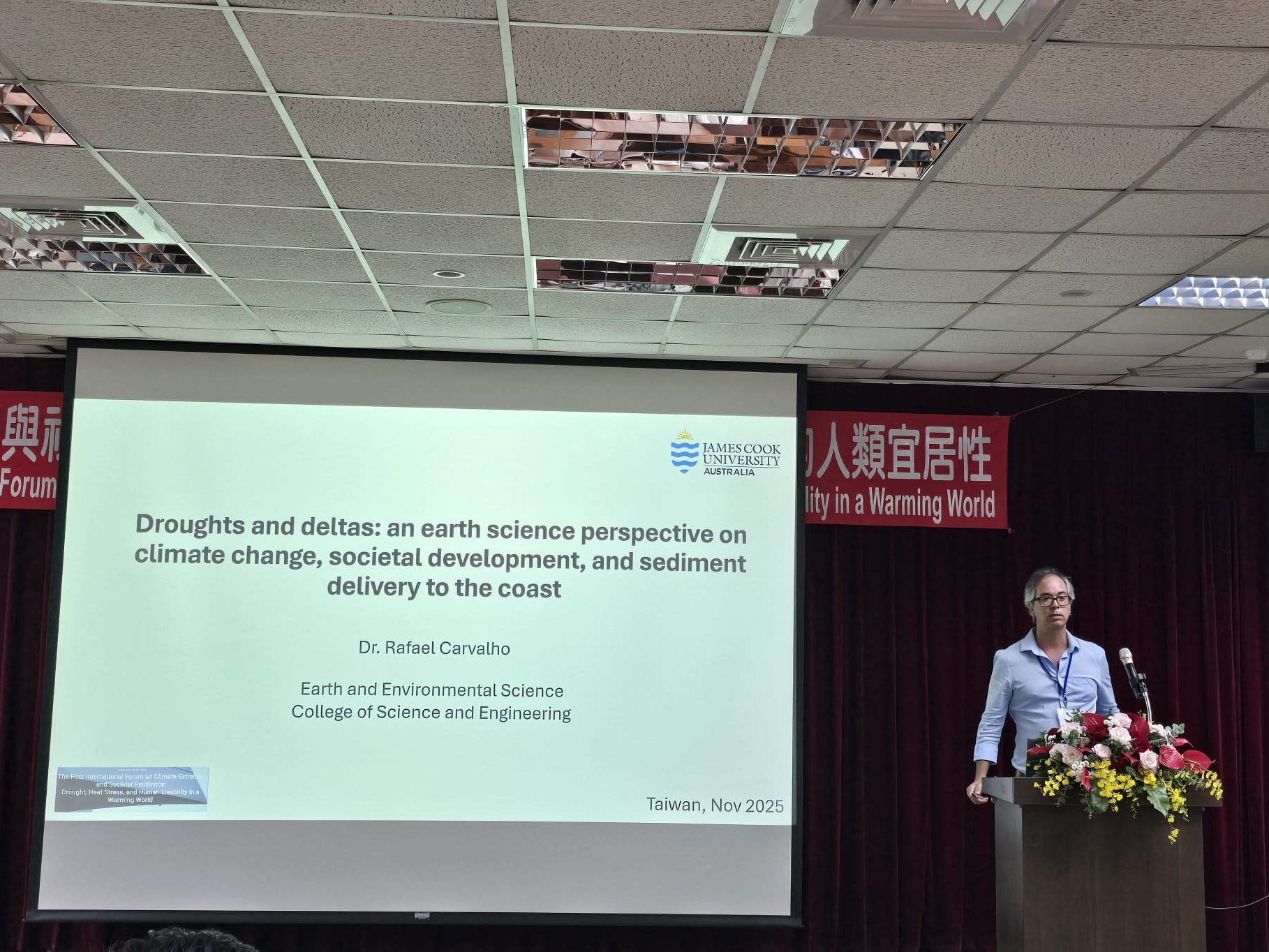 Dr Jarihani, alongside fellow James Cook University Earth and Environmental Science colleagues Dr Rafael Carvalho and Lisa Law, was invited to present in a dedicated session titled “Bridging Hubs for Drought Resilience: TGI & TNQ Drought Hubs Joint Workshop.” This session formed part of Taiwan’s effort to establish a new Taiwan and Global Drought Information and Research Center. The new centre aims to tackle the escalating impacts of climate change, particularly the intensifying effects of droughts and heat stress on livelihoods, landscapes and economies.
