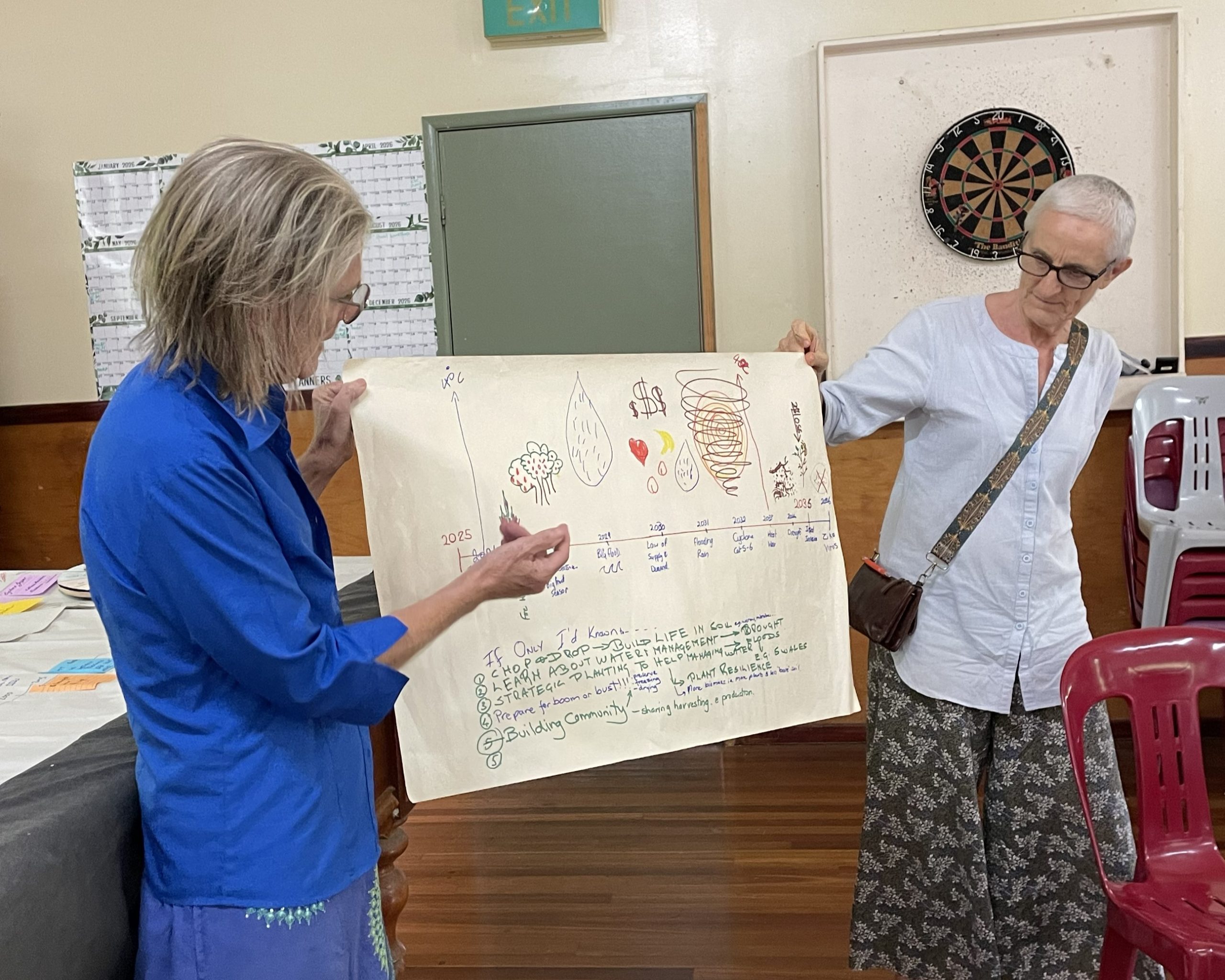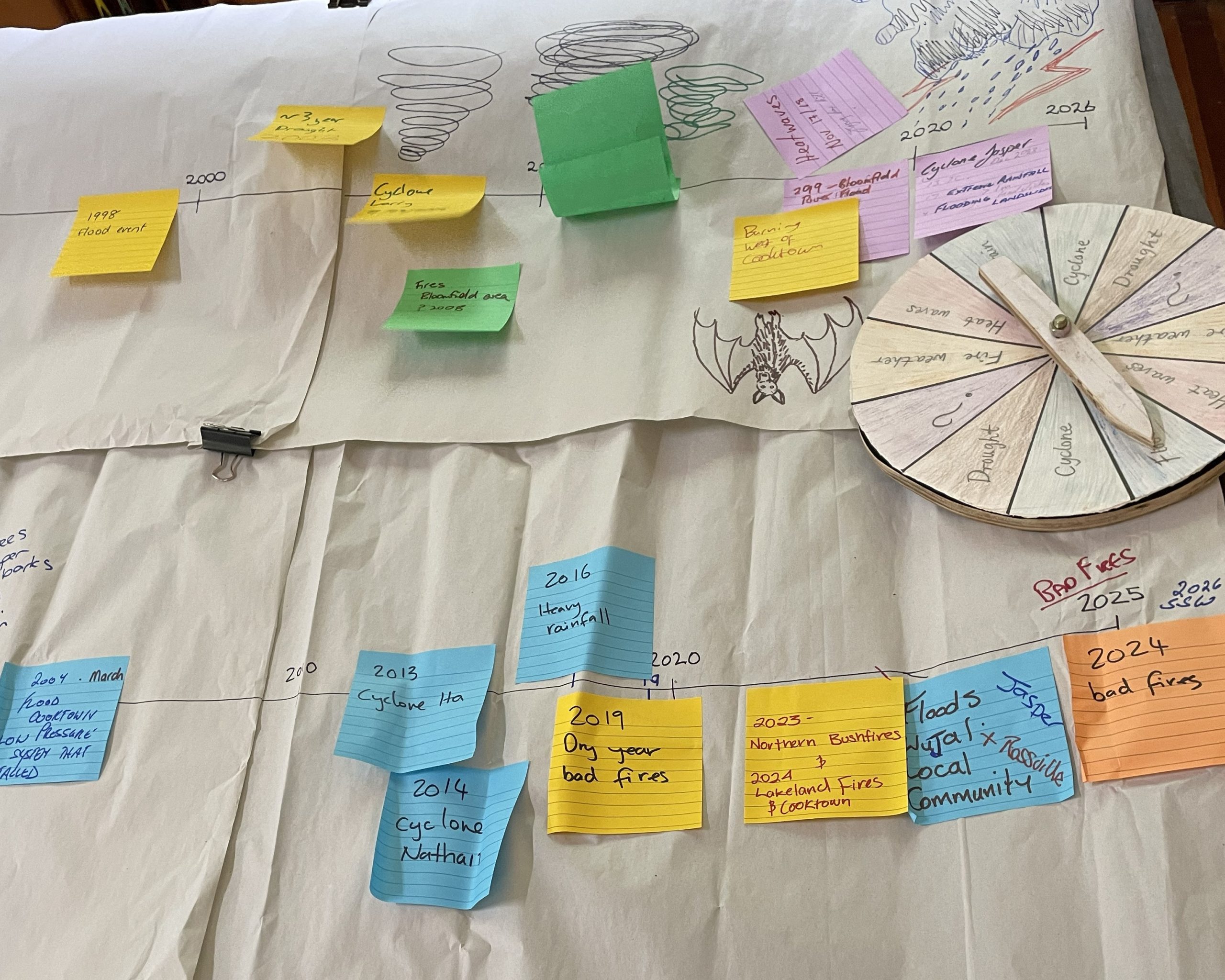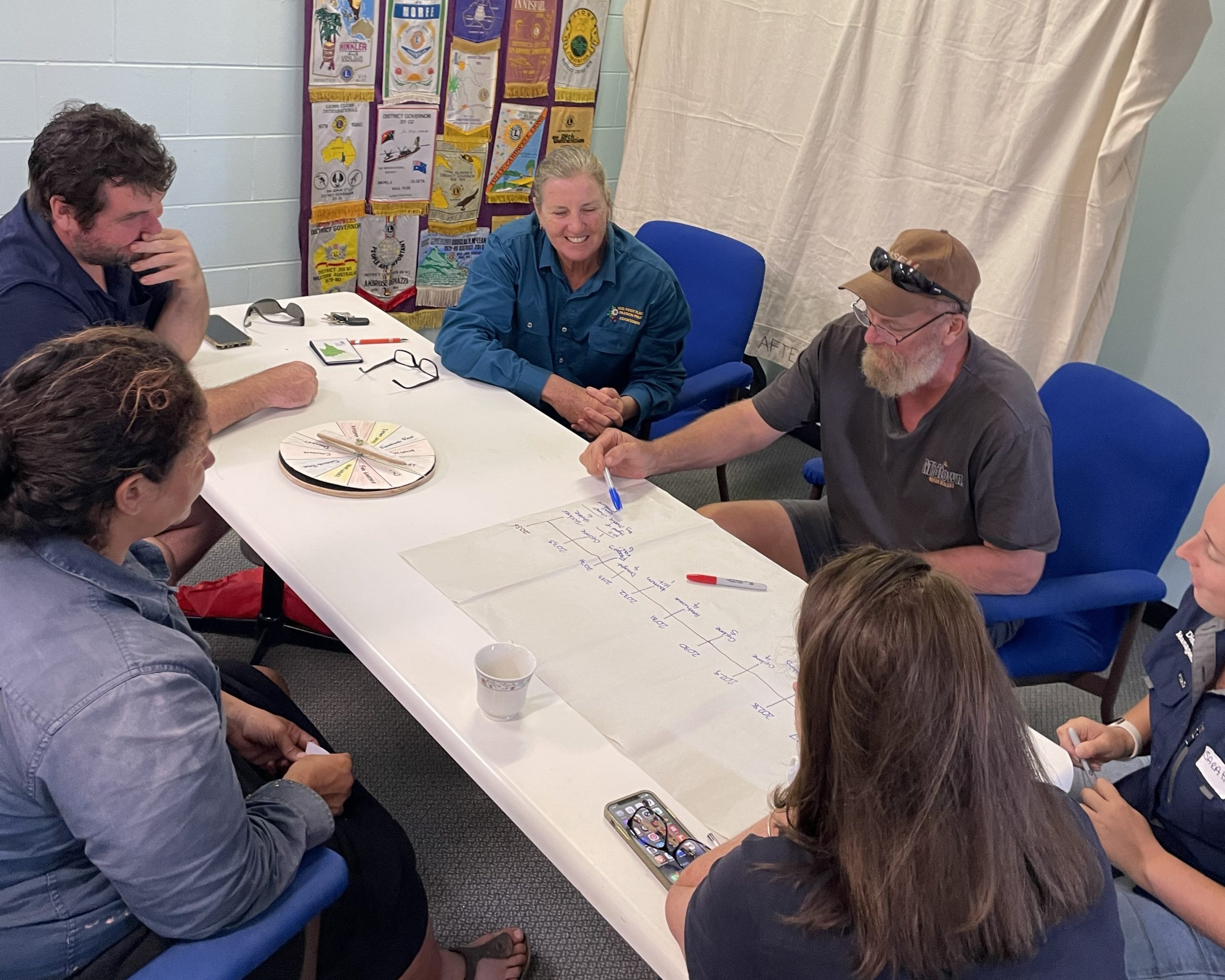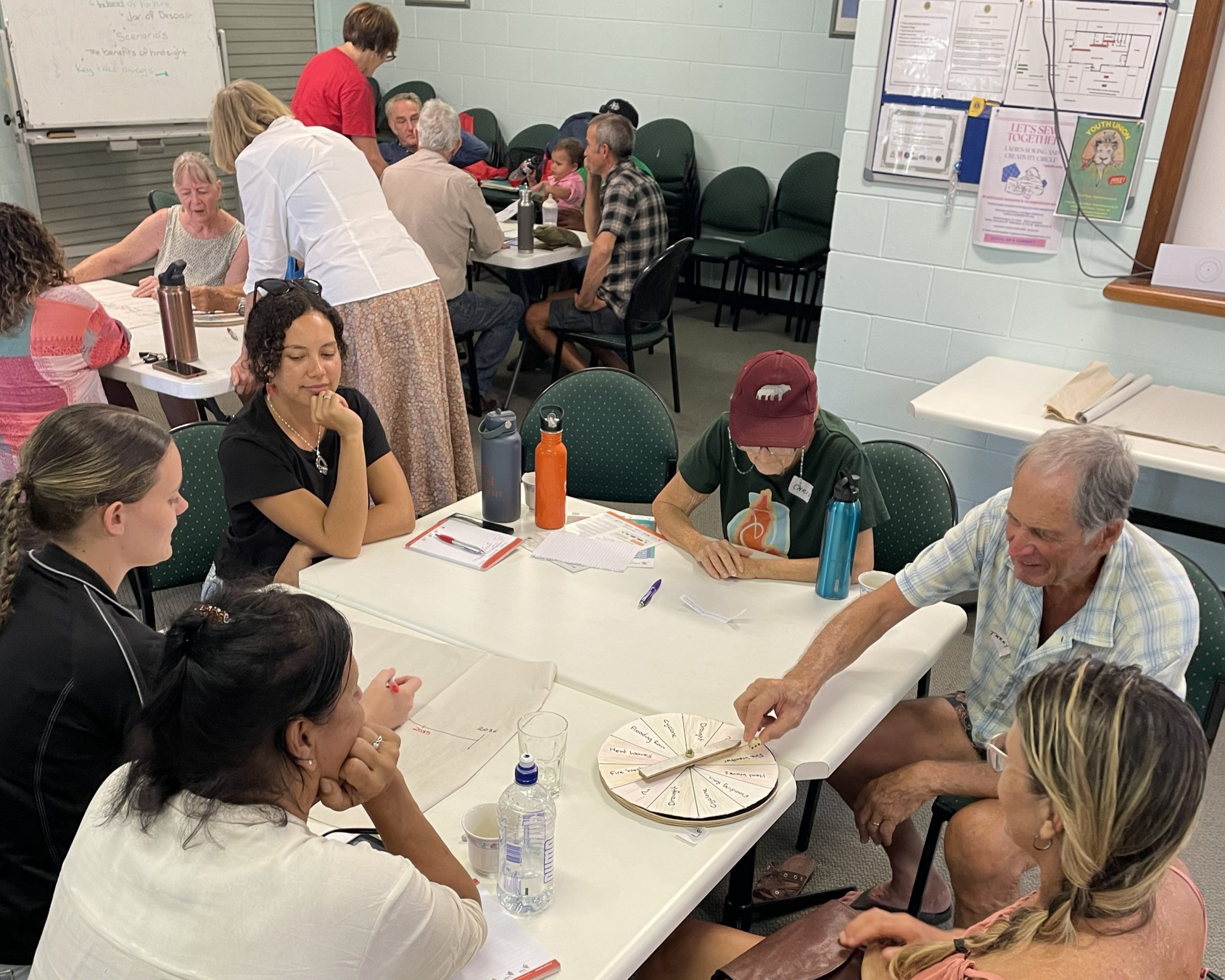 A key feature of the workshops was the interactive ‘Climate Wheel of Fortune’, which helped participants map out possible climate scenarios for the Endeavour Valley out to 2036. By working through realistic “what if” situations, attendees developed practical strategies to maintain productivity, protect infrastructure and reduce risk under a range of future conditions.