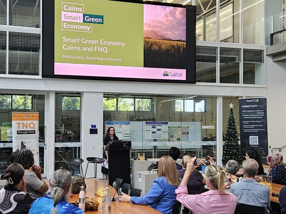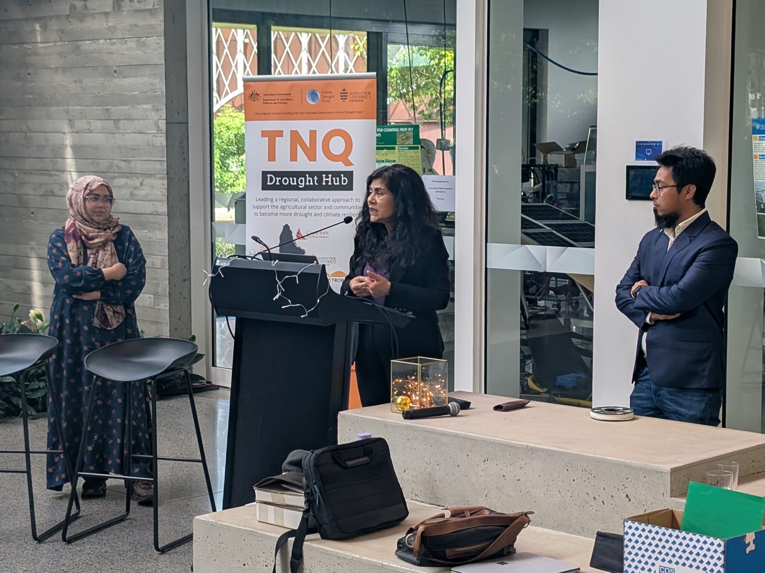 The TNQ Drought Hub was pleased to welcome Professor Veena Sahajwalla AO for a Knowledge Exchange Forum at JCU Ideas Lab in Cairns and tour of the Western cape region last week.